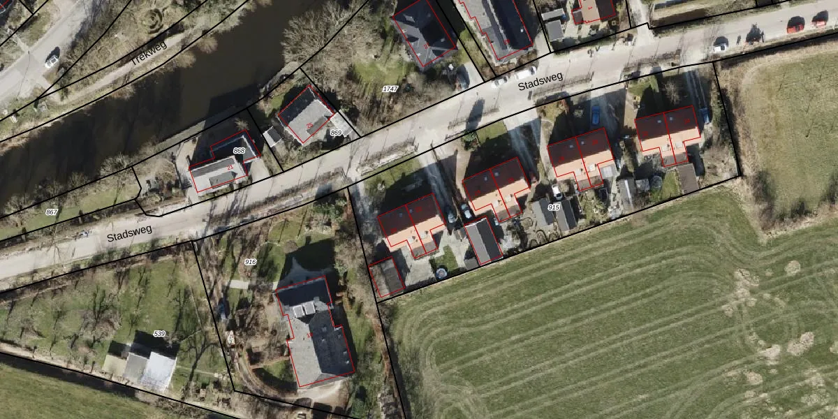 Het perceel waarop Stadsweg 22 staat heeft een oppervlakte van 2790 m². Dit is een zeer groot perceel. De perceeloppervlakte wordt geregistreerd door het Kadaster. Gedetailleerde informatie over de maten van dit perceel kunt u vinden in het rapport Kadastrale kaart met maatvoering van Stadsweg 22.