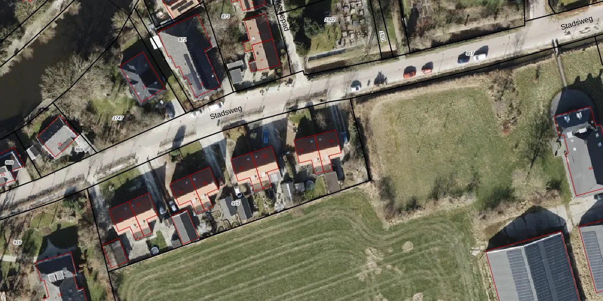 Het perceel waarop Stadsweg 32 staat heeft een oppervlakte van 2790 m². Dit is een zeer groot perceel. De perceeloppervlakte wordt geregistreerd door het Kadaster. Gedetailleerde informatie over de maten van dit perceel kunt u vinden in het rapport Kadastrale kaart met maatvoering van Stadsweg 32.