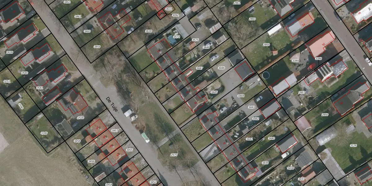 Het perceel waarop De Tuije 33 staat heeft een oppervlakte van 354 m². Dit is een groot perceel. De perceeloppervlakte wordt geregistreerd door het Kadaster. Gedetailleerde informatie over de maten van dit perceel kunt u vinden in het rapport Kadastrale kaart met maatvoering van De Tuije 33.