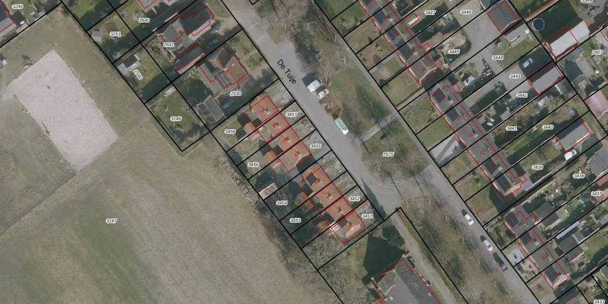 Het perceel waarop De Tuije 40 staat heeft een oppervlakte van 238 m². Dit is een middelgroot perceel. De perceeloppervlakte wordt geregistreerd door het Kadaster. Gedetailleerde informatie over de maten van dit perceel kunt u vinden in het rapport Kadastrale kaart met maatvoering van De Tuije 40.