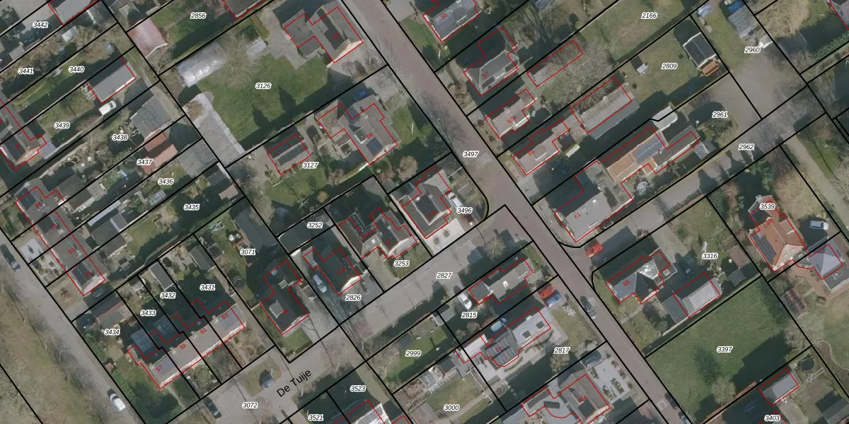 Het perceel waarop De Tuije 69 staat heeft een oppervlakte van 320 m². Dit is een groot perceel. De perceeloppervlakte wordt geregistreerd door het Kadaster. Gedetailleerde informatie over de maten van dit perceel kunt u vinden in het rapport Kadastrale kaart met maatvoering van De Tuije 69.