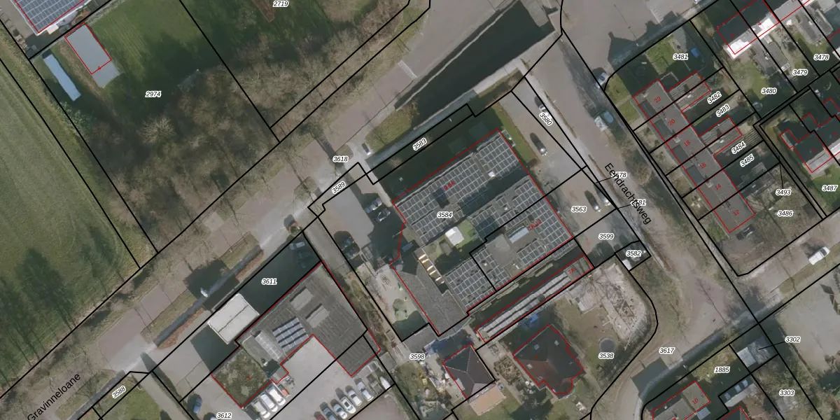 Gravinneloane 1-A is gelegen op kadastraal perceel BGM02C3584. Deze kadastrale aanduiding is uniek en wordt gebruikt door het Kadaster om eigendomsrechten en andere zakelijke rechten vast te leggen. Het perceel maakt onderdeel uit van de kadastrale gemeente Bergum.