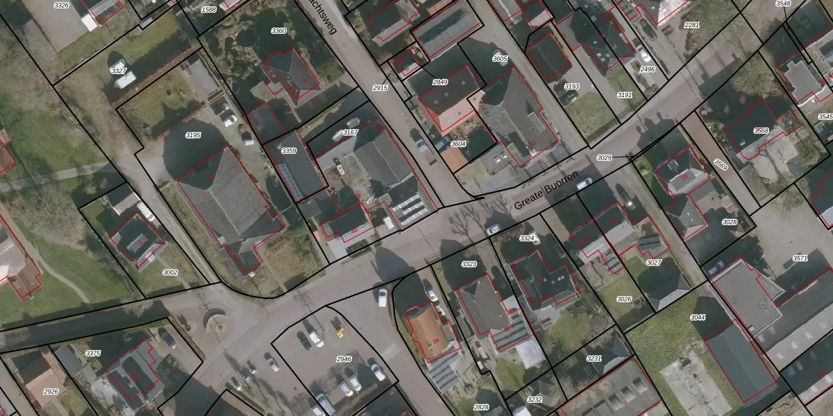 Het perceel waarop Greate Buorren 36 staat heeft een oppervlakte van 738 m². Dit is een groot perceel. De perceeloppervlakte wordt geregistreerd door het Kadaster. Gedetailleerde informatie over de maten van dit perceel kunt u vinden in het rapport Kadastrale kaart met maatvoering van Greate Buorren 36.