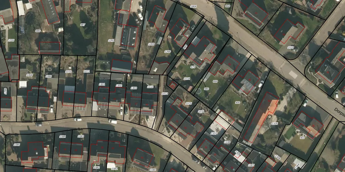 Gebruik de zoekbalk of klik op een perceel voor informatie over de adressen binnen dit perceel.