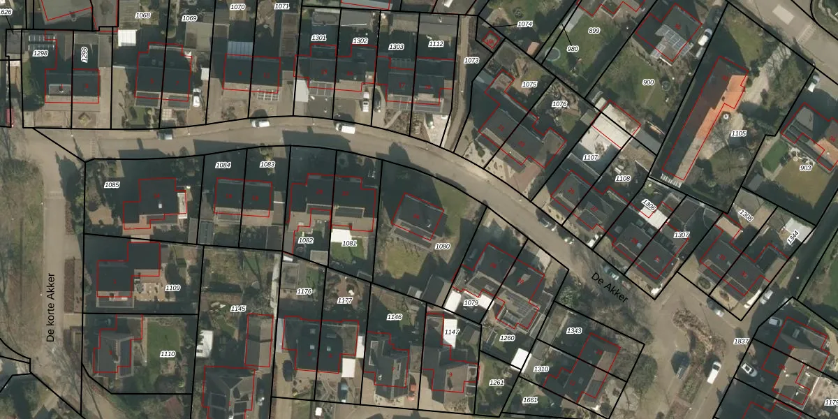 Het perceel waarop De Akker 24 staat heeft een oppervlakte van 634 m². Dit is een groot perceel. De perceeloppervlakte wordt geregistreerd door het Kadaster. Gedetailleerde informatie over de maten van dit perceel kunt u vinden in het rapport Kadastrale kaart met maatvoering van De Akker 24.