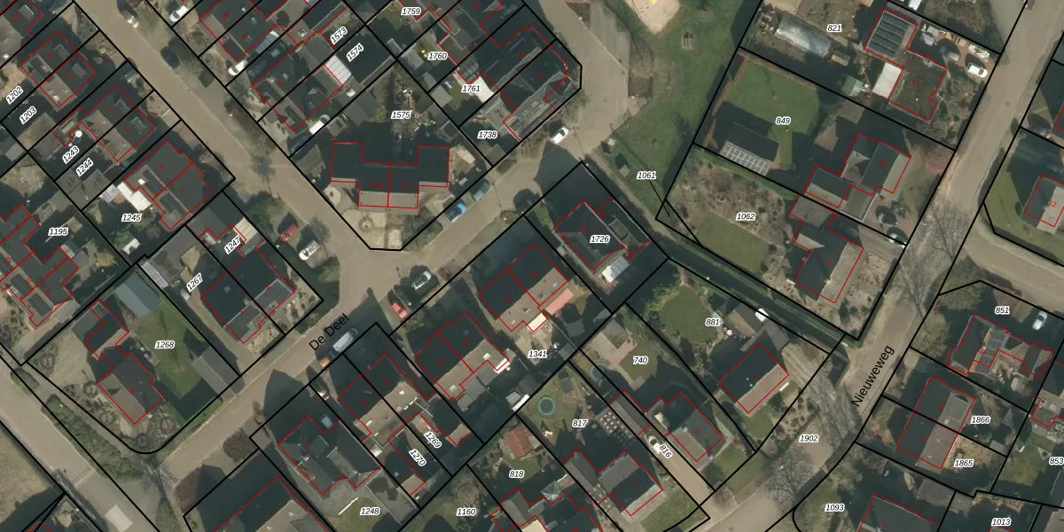Het perceel waarop De Deel 16 staat heeft een oppervlakte van 890 m². Dit is een groot perceel. De perceeloppervlakte wordt geregistreerd door het Kadaster. Gedetailleerde informatie over de maten van dit perceel kunt u vinden in het rapport Kadastrale kaart met maatvoering van De Deel 16.