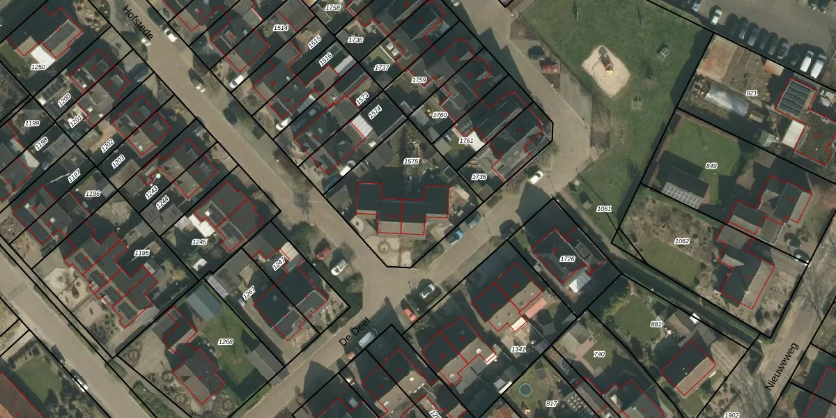 Het perceel waarop De Deel 5 staat heeft een oppervlakte van 735 m². Dit is een groot perceel. De perceeloppervlakte wordt geregistreerd door het Kadaster. Gedetailleerde informatie over de maten van dit perceel kunt u vinden in het rapport Kadastrale kaart met maatvoering van De Deel 5.