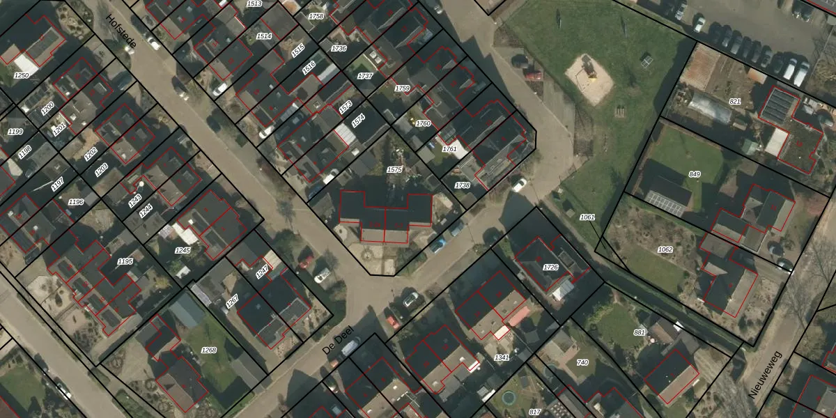 Het perceel waarop De Deel 7 staat heeft een oppervlakte van 735 m². Dit is een groot perceel. De perceeloppervlakte wordt geregistreerd door het Kadaster. Gedetailleerde informatie over de maten van dit perceel kunt u vinden in het rapport Kadastrale kaart met maatvoering van De Deel 7.