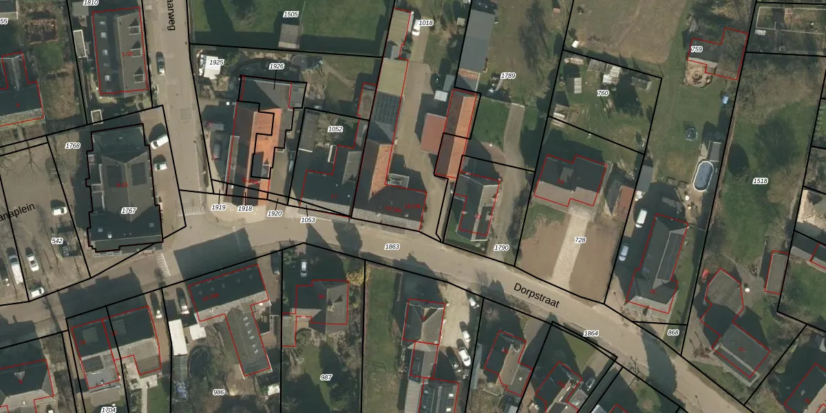 Het perceel waarop Dorpstraat 19 staat heeft een oppervlakte van 1880 m². Dit is een zeer groot perceel. De perceeloppervlakte wordt geregistreerd door het Kadaster. Gedetailleerde informatie over de maten van dit perceel kunt u vinden in het rapport Kadastrale kaart met maatvoering van Dorpstraat 19.