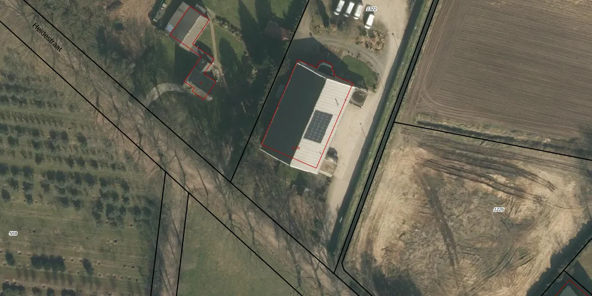 Het perceel waarop Heidestraat 2 staat heeft een oppervlakte van 4070 m². Dit is een zeer groot perceel. De perceeloppervlakte wordt geregistreerd door het Kadaster. Gedetailleerde informatie over de maten van dit perceel kunt u vinden in het rapport Kadastrale kaart met maatvoering van Heidestraat 2.