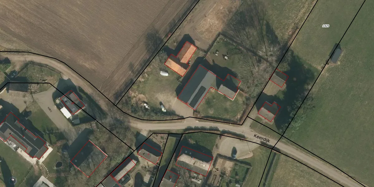 Het perceel waarop Keerdijk 22 staat heeft een oppervlakte van 1,2 ha. Dit is een zeer groot perceel. De perceeloppervlakte wordt geregistreerd door het Kadaster. Gedetailleerde informatie over de maten van dit perceel kunt u vinden in het rapport Kadastrale kaart met maatvoering van Keerdijk 22.