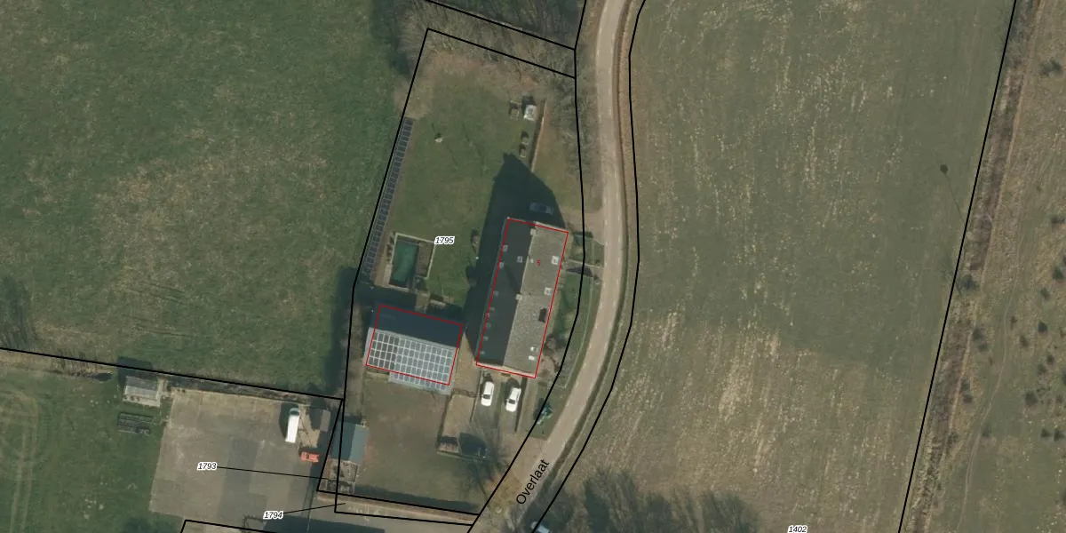 Overlaat 5 is gelegen op kadastraal perceel GVE00L1795. Deze kadastrale aanduiding is uniek en wordt gebruikt door het Kadaster om eigendomsrechten en andere zakelijke rechten vast te leggen. Het perceel maakt onderdeel uit van de kadastrale gemeente Grave.