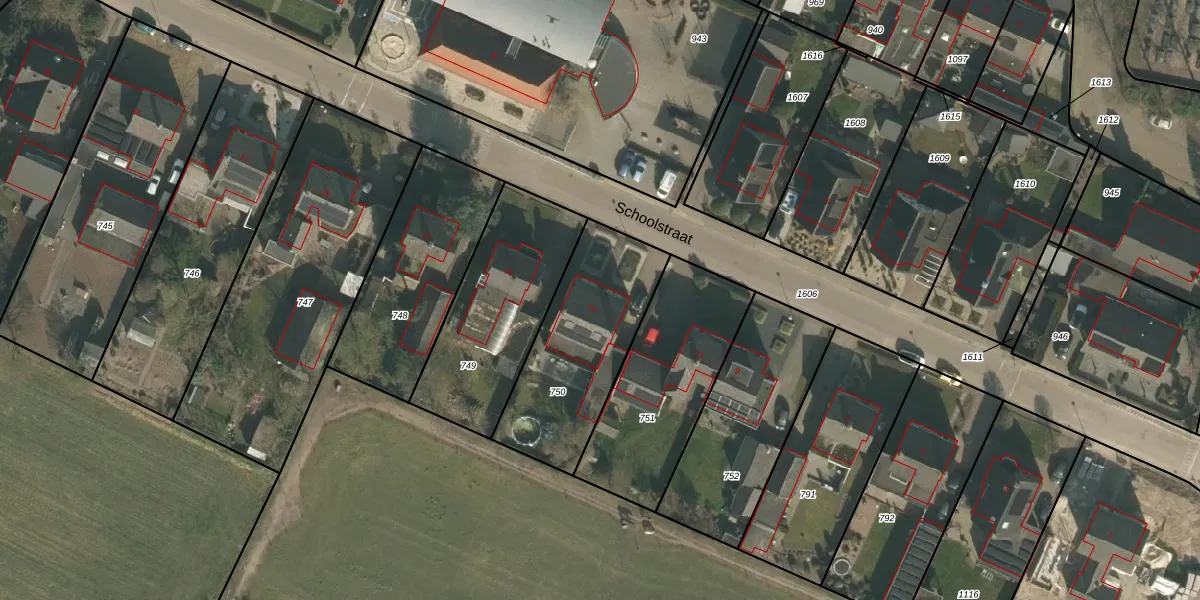 Het perceel waarop Schoolstraat 13 staat heeft een oppervlakte van 610 m². Dit is een groot perceel. De perceeloppervlakte wordt geregistreerd door het Kadaster. Gedetailleerde informatie over de maten van dit perceel kunt u vinden in het rapport Kadastrale kaart met maatvoering van Schoolstraat 13.