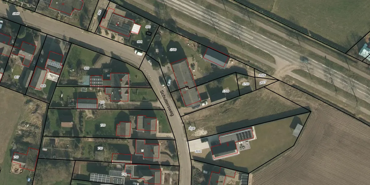Schuttersweg 12 is gelegen op kadastraal perceel GVE00L1709. Deze kadastrale aanduiding is uniek en wordt gebruikt door het Kadaster om eigendomsrechten en andere zakelijke rechten vast te leggen. Het perceel maakt onderdeel uit van de kadastrale gemeente Grave.