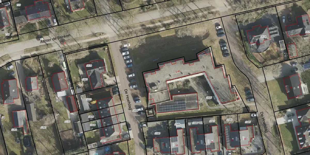 Het perceel waarop De Hoefslag 19 staat heeft een oppervlakte van 2115 m². Dit is een zeer groot perceel. De perceeloppervlakte wordt geregistreerd door het Kadaster. Gedetailleerde informatie over de maten van dit perceel kunt u vinden in het rapport Kadastrale kaart met maatvoering van De Hoefslag 19.