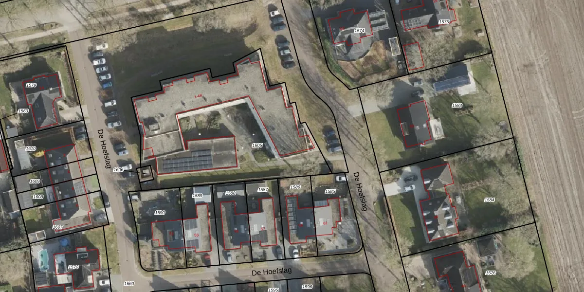 Het perceel waarop De Hoefslag 33 staat heeft een oppervlakte van 2115 m². Dit is een zeer groot perceel. De perceeloppervlakte wordt geregistreerd door het Kadaster. Gedetailleerde informatie over de maten van dit perceel kunt u vinden in het rapport Kadastrale kaart met maatvoering van De Hoefslag 33.
