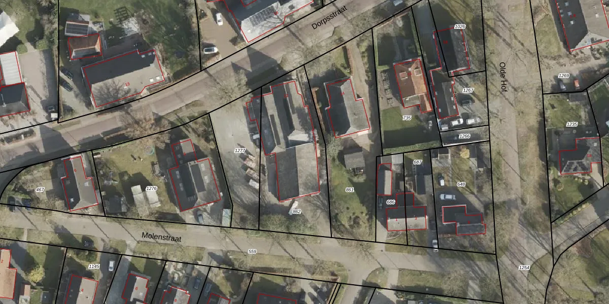 Het perceel waarop Dorpsstraat 12-d staat heeft een oppervlakte van 1028 m². Dit is een zeer groot perceel. De perceeloppervlakte wordt geregistreerd door het Kadaster. Gedetailleerde informatie over de maten van dit perceel kunt u vinden in het rapport Kadastrale kaart met maatvoering van Dorpsstraat 12-d.