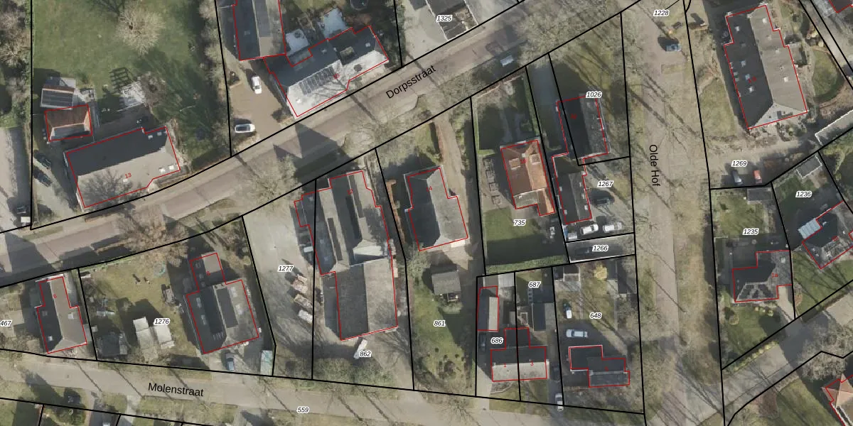 Het perceel waarop Dorpsstraat 14 staat heeft een oppervlakte van 1176 m². Dit is een zeer groot perceel. De perceeloppervlakte wordt geregistreerd door het Kadaster. Gedetailleerde informatie over de maten van dit perceel kunt u vinden in het rapport Kadastrale kaart met maatvoering van Dorpsstraat 14.