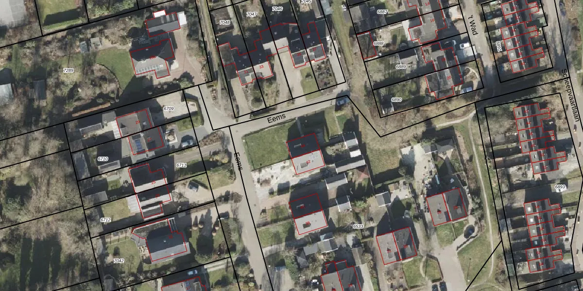 Het perceel waarop Eems 44 staat heeft een oppervlakte van 5785 m². Dit is een zeer groot perceel. De perceeloppervlakte wordt geregistreerd door het Kadaster. Gedetailleerde informatie over de maten van dit perceel kunt u vinden in het rapport Kadastrale kaart met maatvoering van Eems 44.