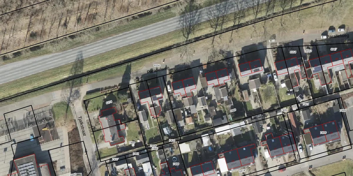 Het perceel waarop Parallelweg 6 staat heeft een oppervlakte van 2426 m². Dit is een zeer groot perceel. De perceeloppervlakte wordt geregistreerd door het Kadaster. Gedetailleerde informatie over de maten van dit perceel kunt u vinden in het rapport Kadastrale kaart met maatvoering van Parallelweg 6.