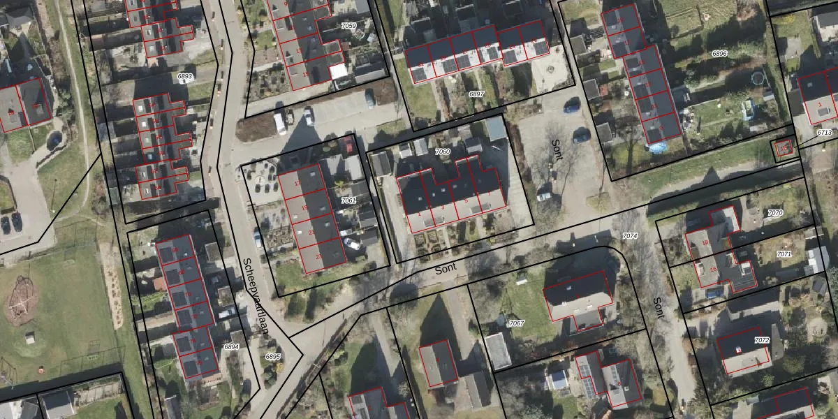 Het perceel waarop Sont 1 staat heeft een oppervlakte van 936 m². Dit is een groot perceel. De perceeloppervlakte wordt geregistreerd door het Kadaster. Gedetailleerde informatie over de maten van dit perceel kunt u vinden in het rapport Kadastrale kaart met maatvoering van Sont 1.