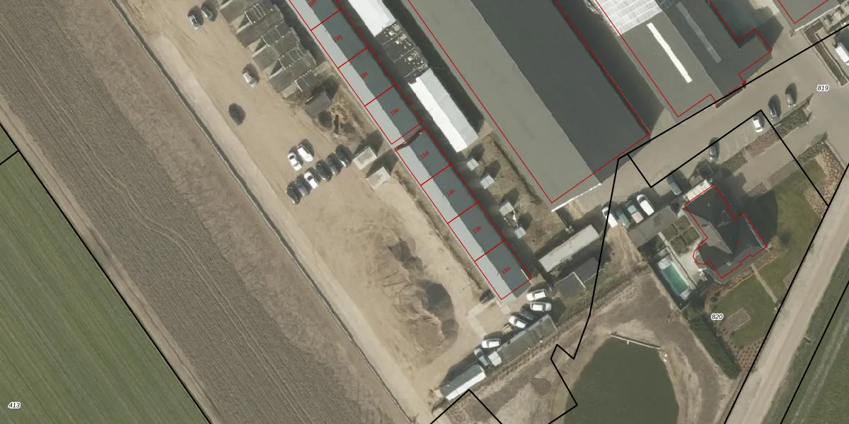 Het perceel waarop Bergsestraat 25-g staat heeft een oppervlakte van 4,5 ha. Dit is een zeer groot perceel. De perceeloppervlakte wordt geregistreerd door het Kadaster. Gedetailleerde informatie over de maten van dit perceel kunt u vinden in het rapport Kadastrale kaart met maatvoering van Bergsestraat 25-g.