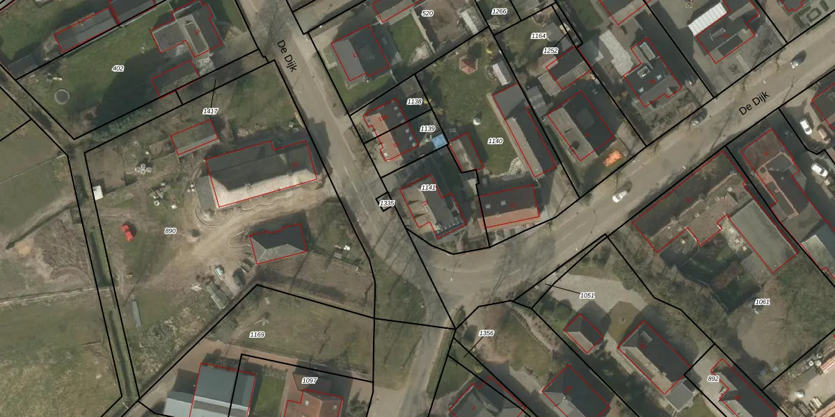 Het perceel waarop De Dijk 13 staat heeft een oppervlakte van 440 m². Dit is een groot perceel. De perceeloppervlakte wordt geregistreerd door het Kadaster. Gedetailleerde informatie over de maten van dit perceel kunt u vinden in het rapport Kadastrale kaart met maatvoering van De Dijk 13.