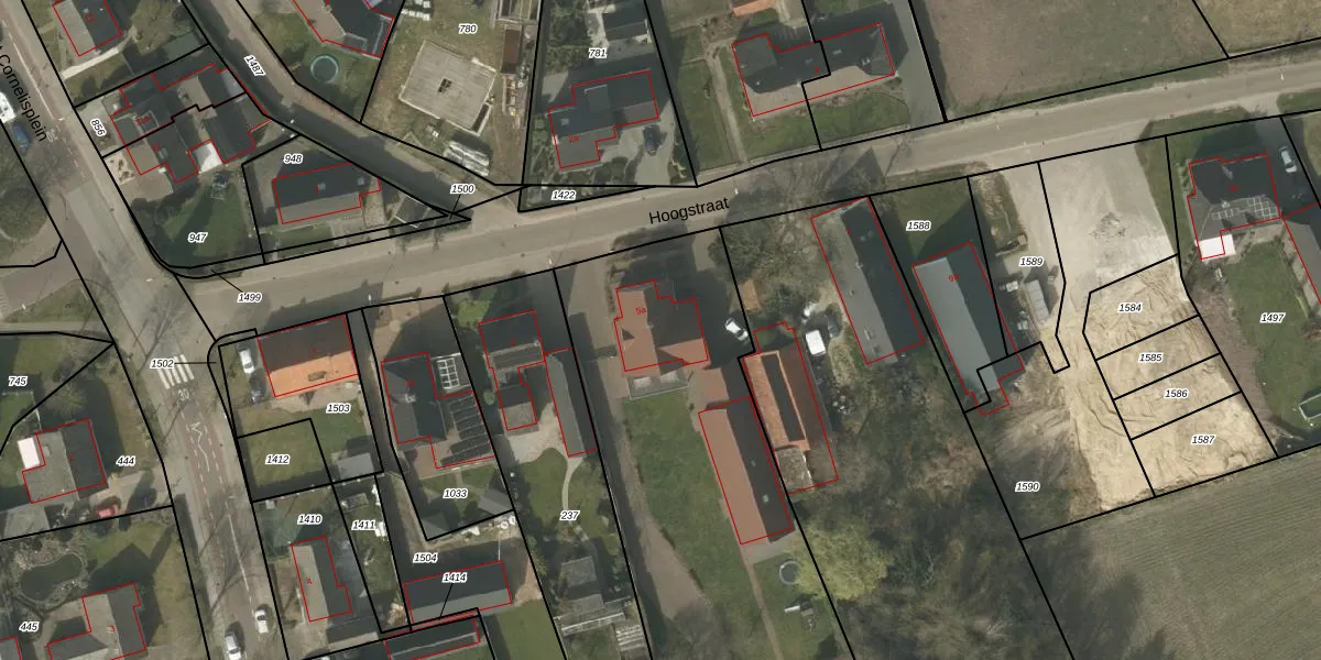 Het perceel waarop Hoogstraat 5-a staat heeft een oppervlakte van 6230 m². Dit is een zeer groot perceel. De perceeloppervlakte wordt geregistreerd door het Kadaster. Gedetailleerde informatie over de maten van dit perceel kunt u vinden in het rapport Kadastrale kaart met maatvoering van Hoogstraat 5-a.