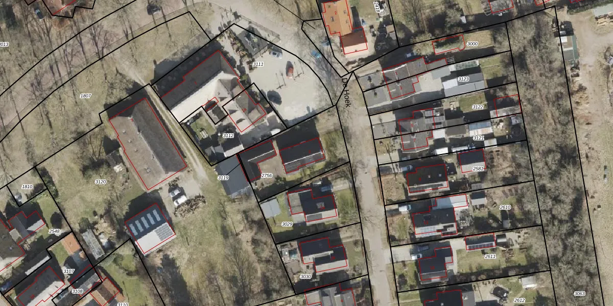 Het perceel waarop De Hoek 2 staat heeft een oppervlakte van 630 m². Dit is een groot perceel. De perceeloppervlakte wordt geregistreerd door het Kadaster. Gedetailleerde informatie over de maten van dit perceel kunt u vinden in het rapport Kadastrale kaart met maatvoering van De Hoek 2.