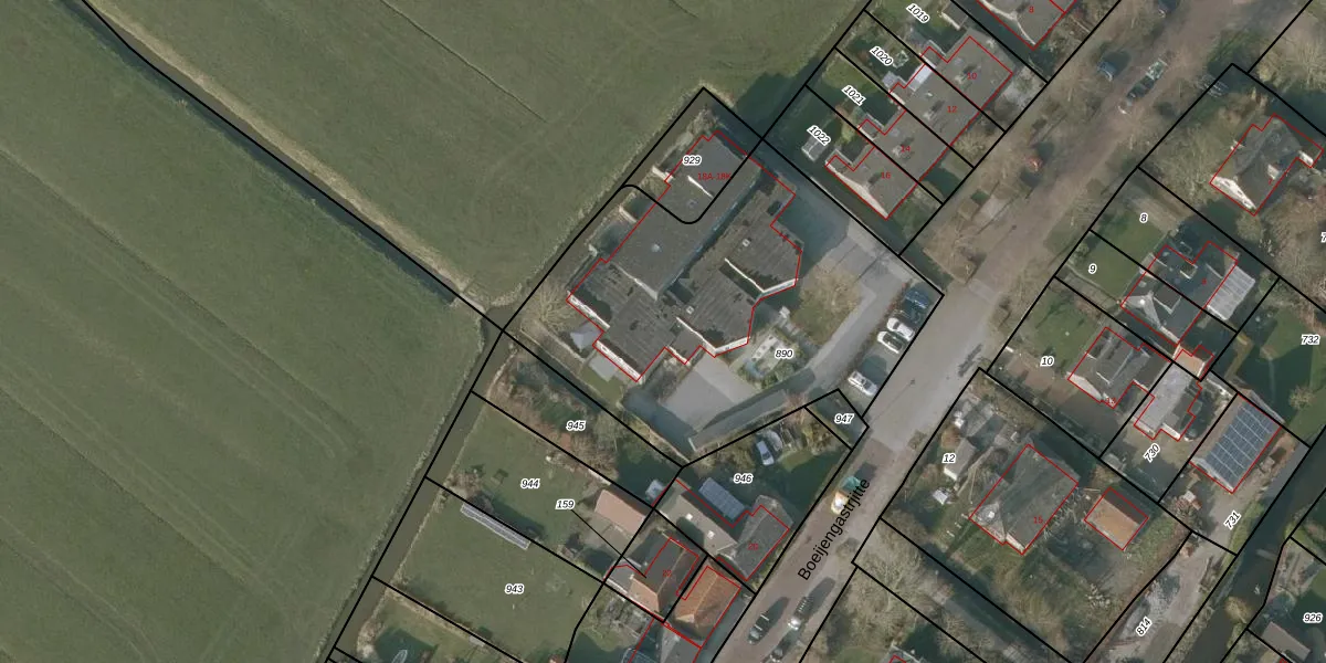 Het perceel waarop Boeijengastrjitte 18-K staat heeft een oppervlakte van 1850 m². Dit is een zeer groot perceel. De perceeloppervlakte wordt geregistreerd door het Kadaster. Gedetailleerde informatie over de maten van dit perceel kunt u vinden in het rapport Kadastrale kaart met maatvoering van Boeijengastrjitte 18-K.
