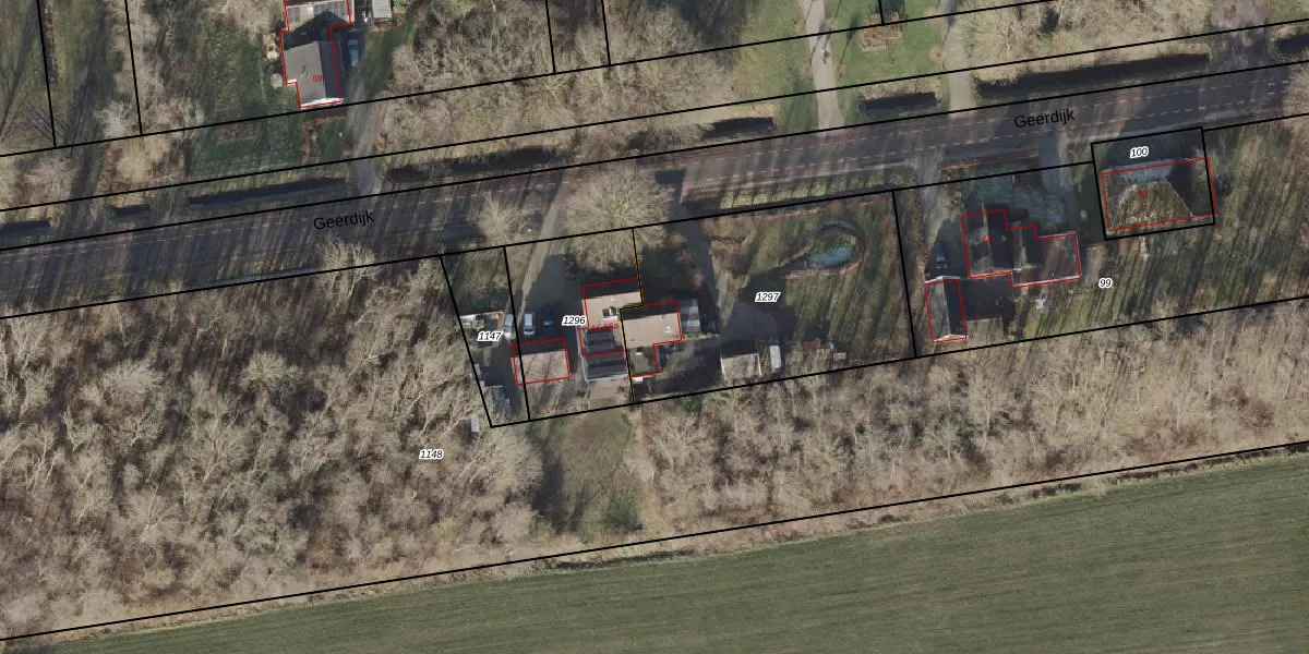 Het perceel waarop Geerdijk 56-a staat heeft een oppervlakte van 1106 m². Dit is een zeer groot perceel. De perceeloppervlakte wordt geregistreerd door het Kadaster. Gedetailleerde informatie over de maten van dit perceel kunt u vinden in het rapport Kadastrale kaart met maatvoering van Geerdijk 56-a.