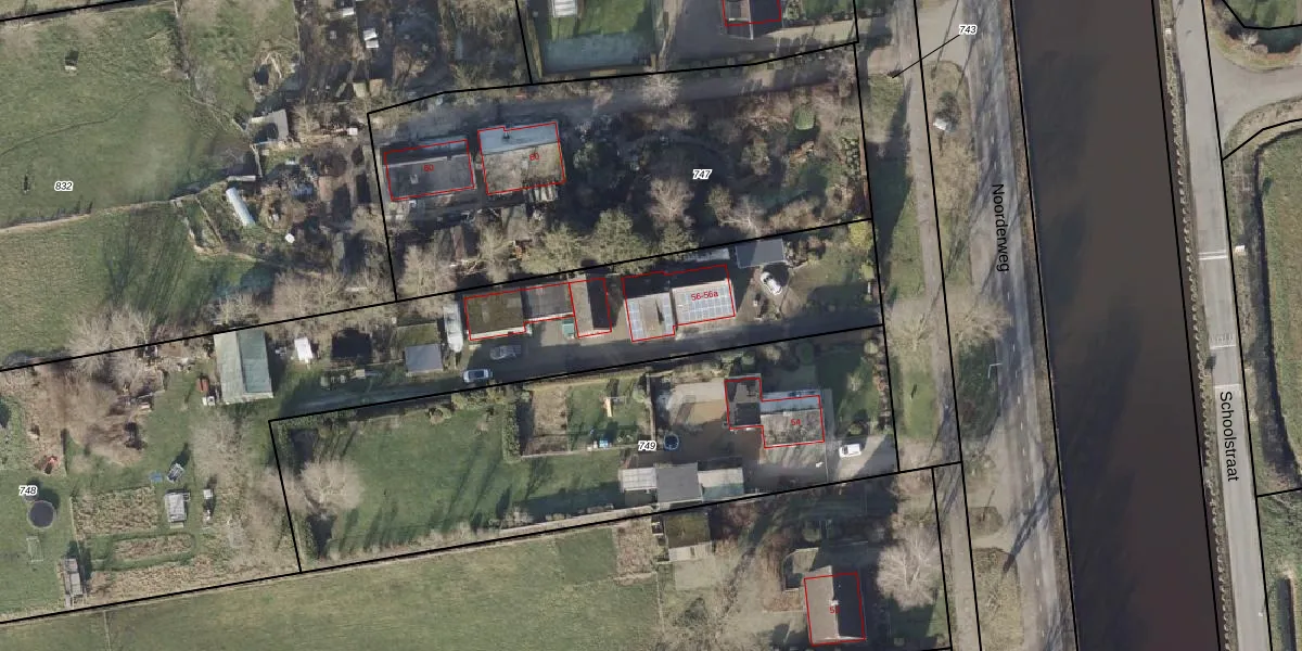 Noorderweg 56-a is gelegen op kadastraal perceel HAM00L748. Deze kadastrale aanduiding is uniek en wordt gebruikt door het Kadaster om eigendomsrechten en andere zakelijke rechten vast te leggen. Het perceel maakt onderdeel uit van de kadastrale gemeente Den Ham.