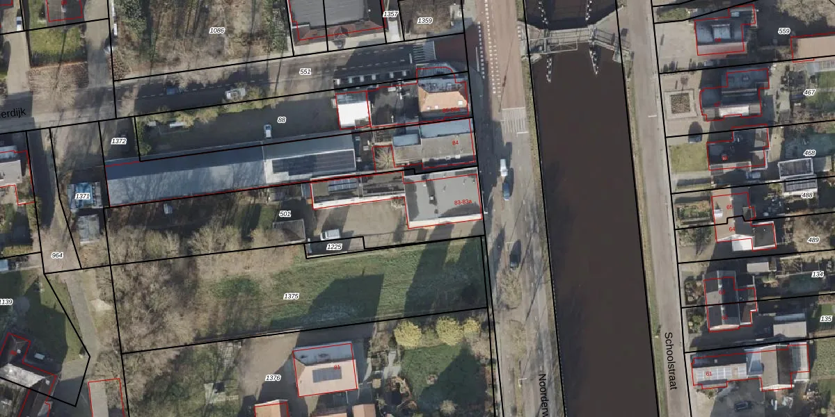Noorderweg 83-a is gelegen op kadastraal perceel HAM00L501. Deze kadastrale aanduiding is uniek en wordt gebruikt door het Kadaster om eigendomsrechten en andere zakelijke rechten vast te leggen. Het perceel maakt onderdeel uit van de kadastrale gemeente Den Ham.