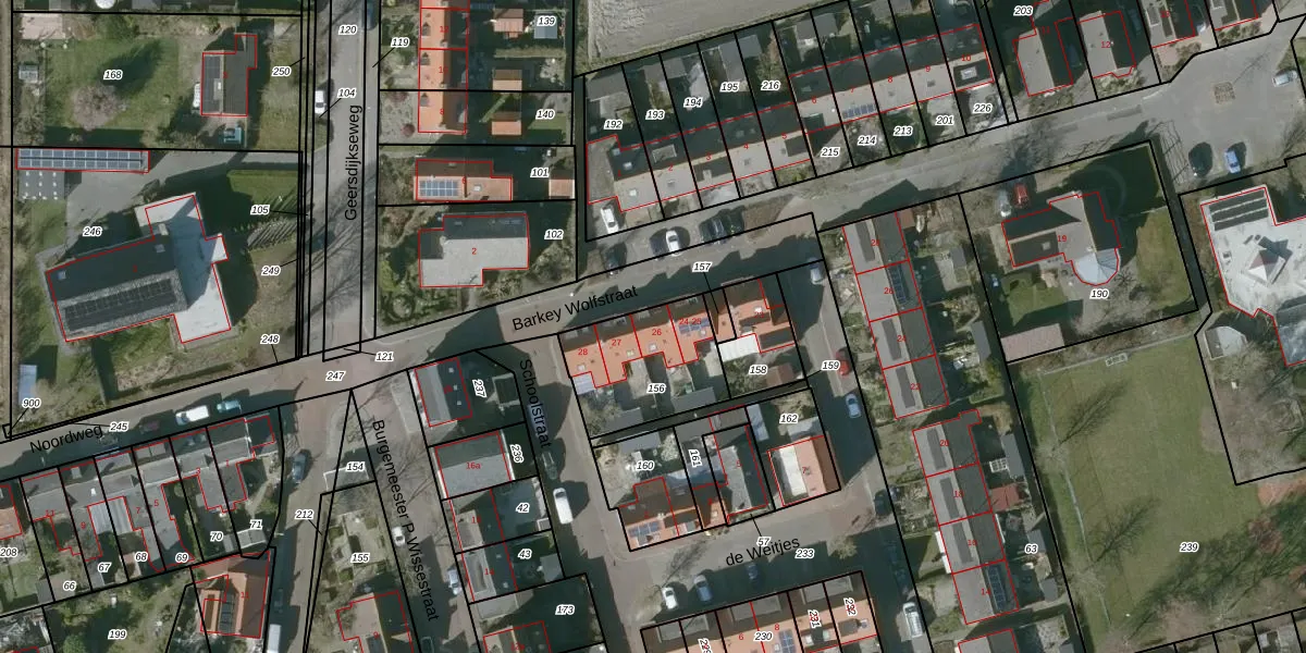 Het perceel waarop Barkey Wolfstraat 26 staat heeft een oppervlakte van 383 m². Dit is een groot perceel. De perceeloppervlakte wordt geregistreerd door het Kadaster. Gedetailleerde informatie over de maten van dit perceel kunt u vinden in het rapport Kadastrale kaart met maatvoering van Barkey Wolfstraat 26.