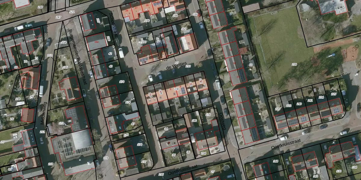 Het perceel waarop de Weitjes 8 staat heeft een oppervlakte van 242 m². Dit is een middelgroot perceel. De perceeloppervlakte wordt geregistreerd door het Kadaster. Gedetailleerde informatie over de maten van dit perceel kunt u vinden in het rapport Kadastrale kaart met maatvoering van de Weitjes 8.