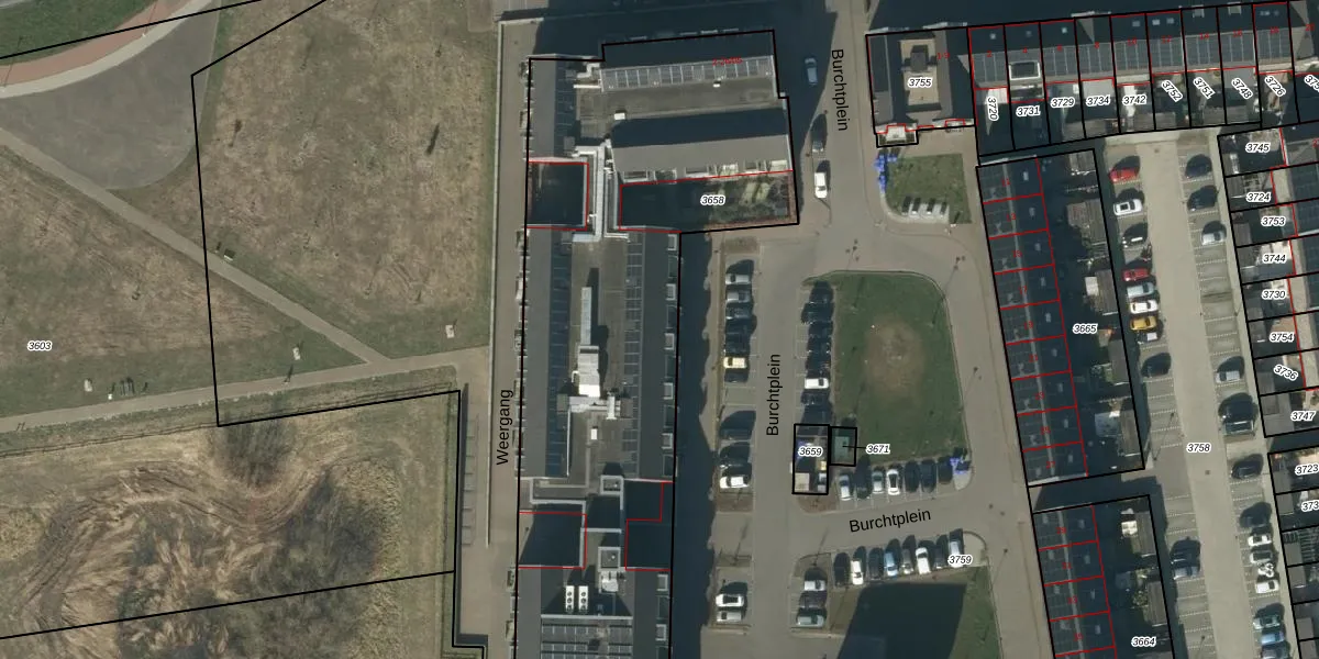 Het perceel waarop Burchtplein 2-a-37 staat heeft een oppervlakte van 2860 m². Dit is een zeer groot perceel. De perceeloppervlakte wordt geregistreerd door het Kadaster. Gedetailleerde informatie over de maten van dit perceel kunt u vinden in het rapport Kadastrale kaart met maatvoering van Burchtplein 2-a-37.