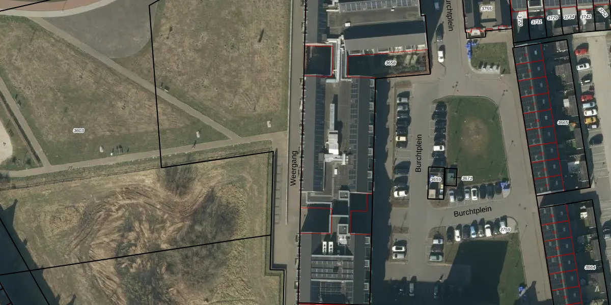 Het perceel waarop Burchtplein 2-a-44 staat heeft een oppervlakte van 2860 m². Dit is een zeer groot perceel. De perceeloppervlakte wordt geregistreerd door het Kadaster. Gedetailleerde informatie over de maten van dit perceel kunt u vinden in het rapport Kadastrale kaart met maatvoering van Burchtplein 2-a-44.