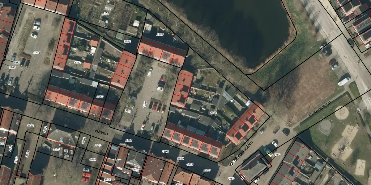 Het perceel waarop Haven 15 staat heeft een oppervlakte van 2035 m². Dit is een zeer groot perceel. De perceeloppervlakte wordt geregistreerd door het Kadaster. Gedetailleerde informatie over de maten van dit perceel kunt u vinden in het rapport Kadastrale kaart met maatvoering van Haven 15.
