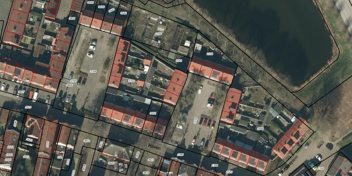 Het perceel waarop Haven 29 staat heeft een oppervlakte van 1693 m². Dit is een zeer groot perceel. De perceeloppervlakte wordt geregistreerd door het Kadaster. Gedetailleerde informatie over de maten van dit perceel kunt u vinden in het rapport Kadastrale kaart met maatvoering van Haven 29.