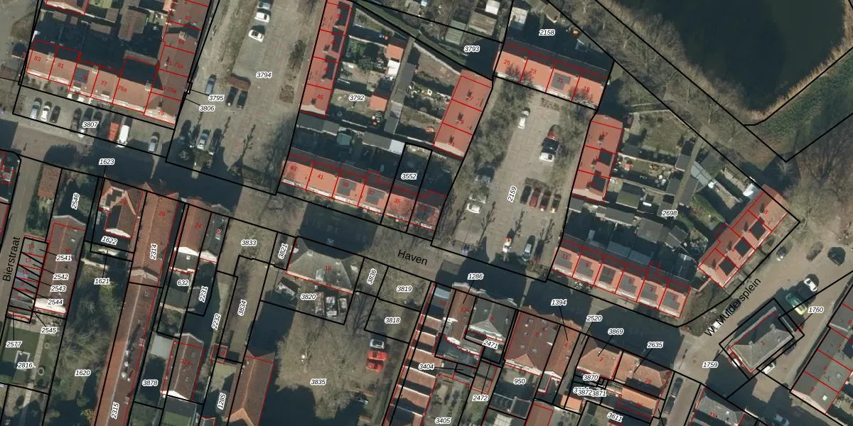 Het perceel waarop Haven 33 staat heeft een oppervlakte van 1693 m². Dit is een zeer groot perceel. De perceeloppervlakte wordt geregistreerd door het Kadaster. Gedetailleerde informatie over de maten van dit perceel kunt u vinden in het rapport Kadastrale kaart met maatvoering van Haven 33.