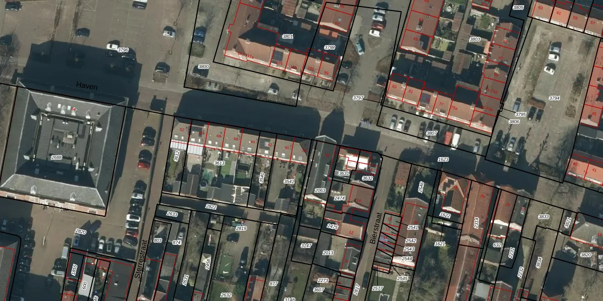 Het perceel waarop Haven 38 staat heeft een oppervlakte van 295 m². Dit is een middelgroot perceel. De perceeloppervlakte wordt geregistreerd door het Kadaster. Gedetailleerde informatie over de maten van dit perceel kunt u vinden in het rapport Kadastrale kaart met maatvoering van Haven 38.