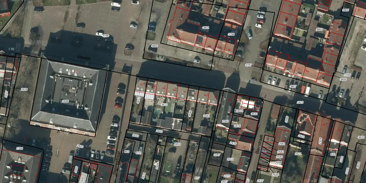 Het perceel waarop Haven 44 staat heeft een oppervlakte van 589 m². Dit is een groot perceel. De perceeloppervlakte wordt geregistreerd door het Kadaster. Gedetailleerde informatie over de maten van dit perceel kunt u vinden in het rapport Kadastrale kaart met maatvoering van Haven 44.