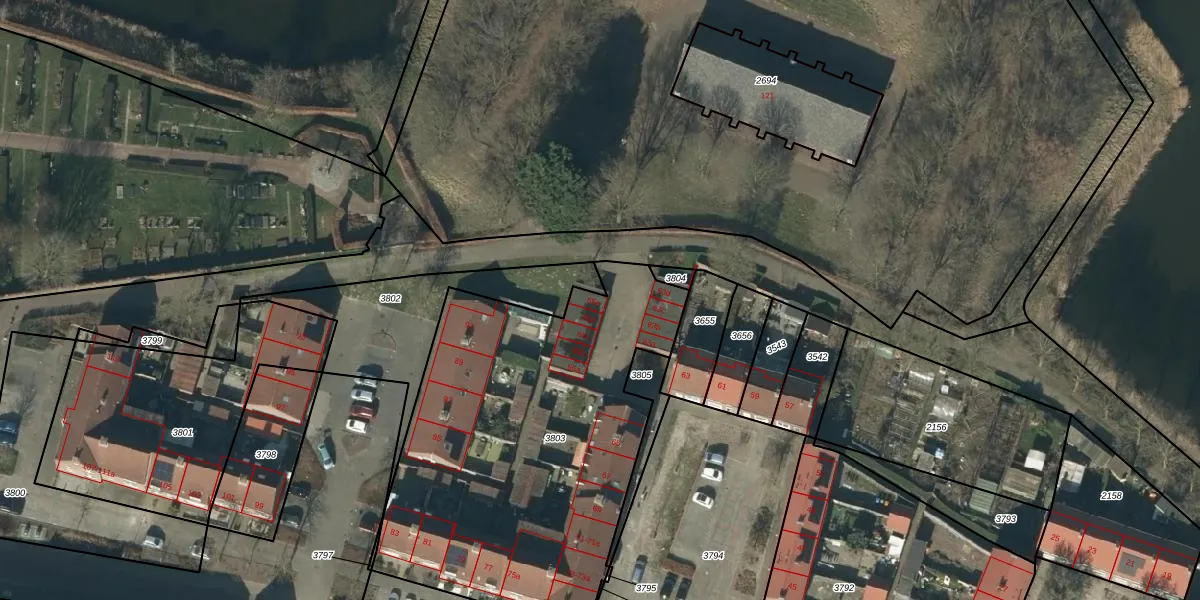 Het perceel waarop Haven 65-e staat heeft een oppervlakte van 2018 m². Dit is een zeer groot perceel. De perceeloppervlakte wordt geregistreerd door het Kadaster. Gedetailleerde informatie over de maten van dit perceel kunt u vinden in het rapport Kadastrale kaart met maatvoering van Haven 65-e.
