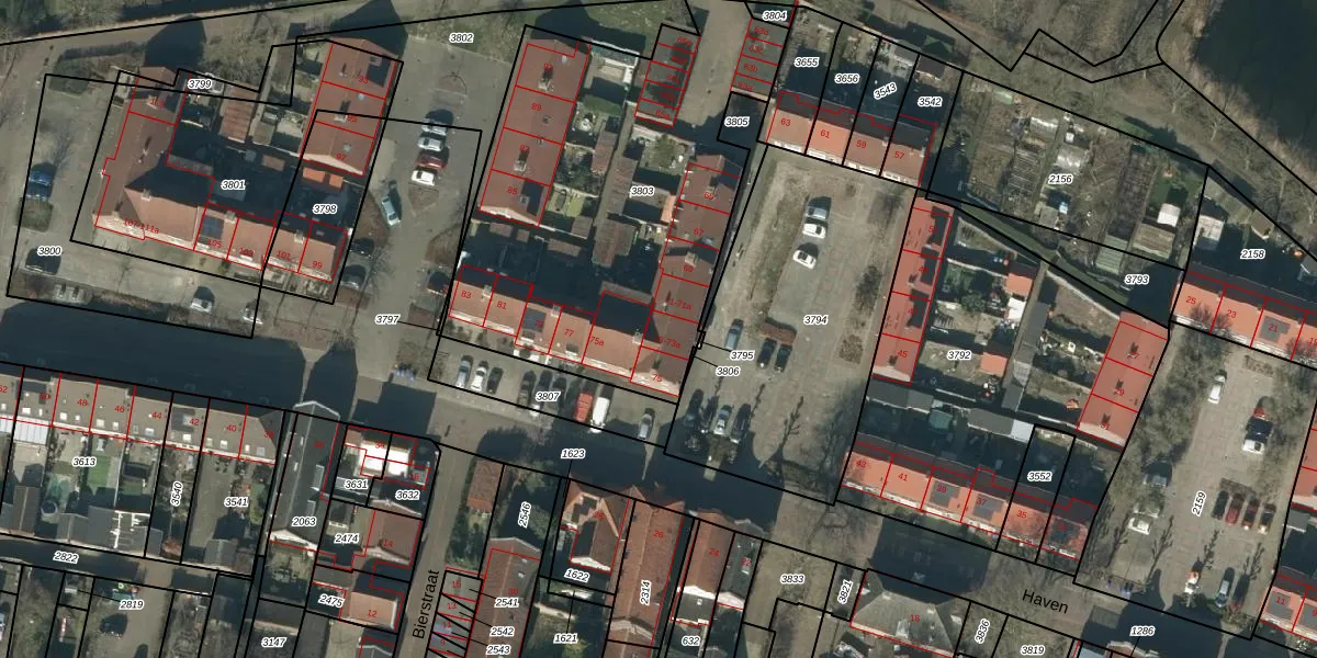 Het perceel waarop Haven 73-a staat heeft een oppervlakte van 2018 m². Dit is een zeer groot perceel. De perceeloppervlakte wordt geregistreerd door het Kadaster. Gedetailleerde informatie over de maten van dit perceel kunt u vinden in het rapport Kadastrale kaart met maatvoering van Haven 73-a.