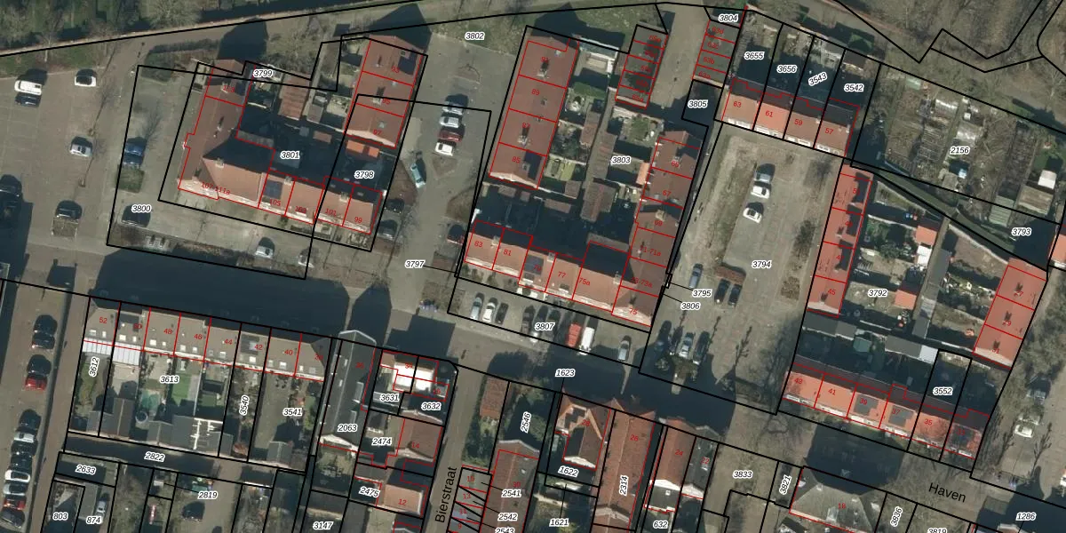 Het perceel waarop Haven 79 staat heeft een oppervlakte van 2018 m². Dit is een zeer groot perceel. De perceeloppervlakte wordt geregistreerd door het Kadaster. Gedetailleerde informatie over de maten van dit perceel kunt u vinden in het rapport Kadastrale kaart met maatvoering van Haven 79.