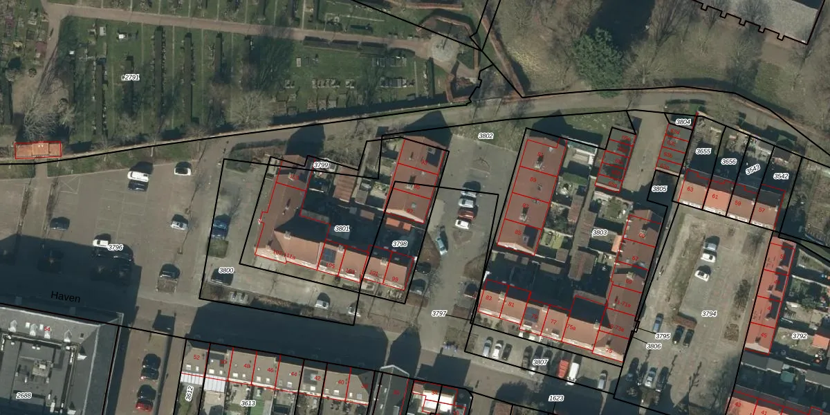 Het perceel waarop Haven 97 staat heeft een oppervlakte van 316 m². Dit is een groot perceel. De perceeloppervlakte wordt geregistreerd door het Kadaster. Gedetailleerde informatie over de maten van dit perceel kunt u vinden in het rapport Kadastrale kaart met maatvoering van Haven 97.