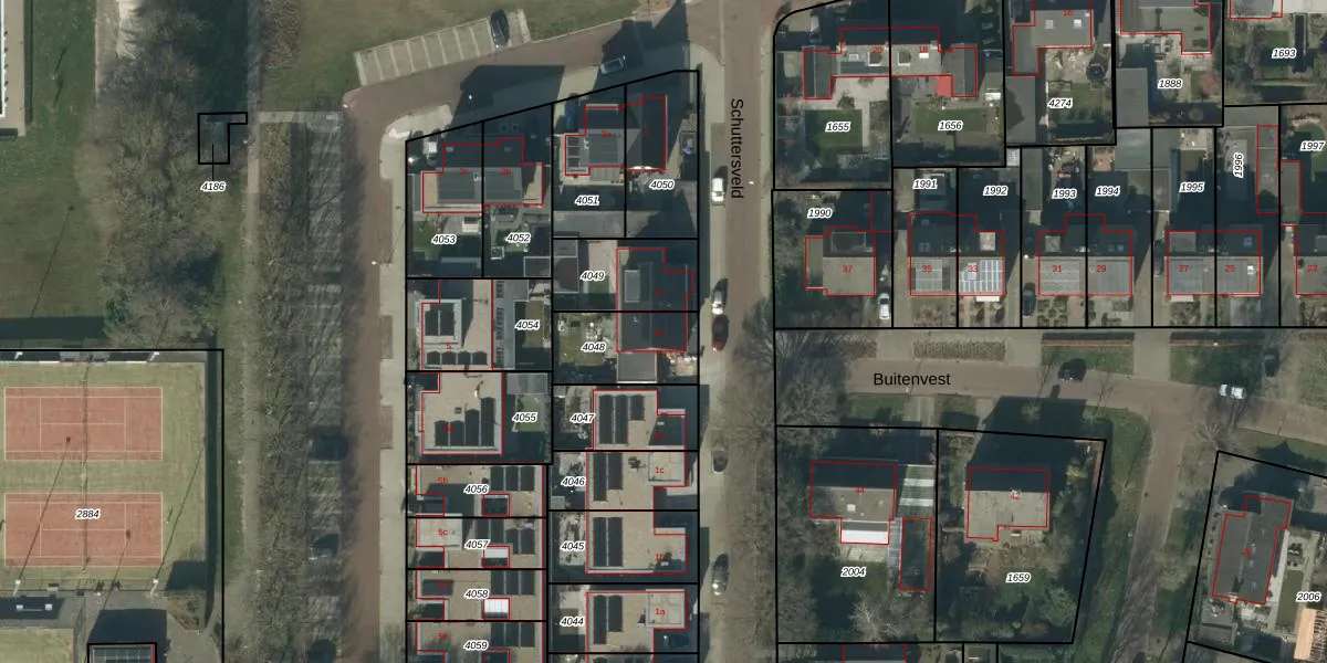 Het perceel waarop Schuttersveld 1-e staat heeft een oppervlakte van 242 m². Dit is een middelgroot perceel. De perceeloppervlakte wordt geregistreerd door het Kadaster. Gedetailleerde informatie over de maten van dit perceel kunt u vinden in het rapport Kadastrale kaart met maatvoering van Schuttersveld 1-e.