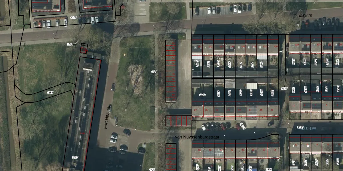 Stadsweg 1-j is gelegen op kadastraal perceel GTD01A1724. Deze kadastrale aanduiding is uniek en wordt gebruikt door het Kadaster om eigendomsrechten en andere zakelijke rechten vast te leggen. Het perceel maakt onderdeel uit van de kadastrale gemeente Geertruidenberg.