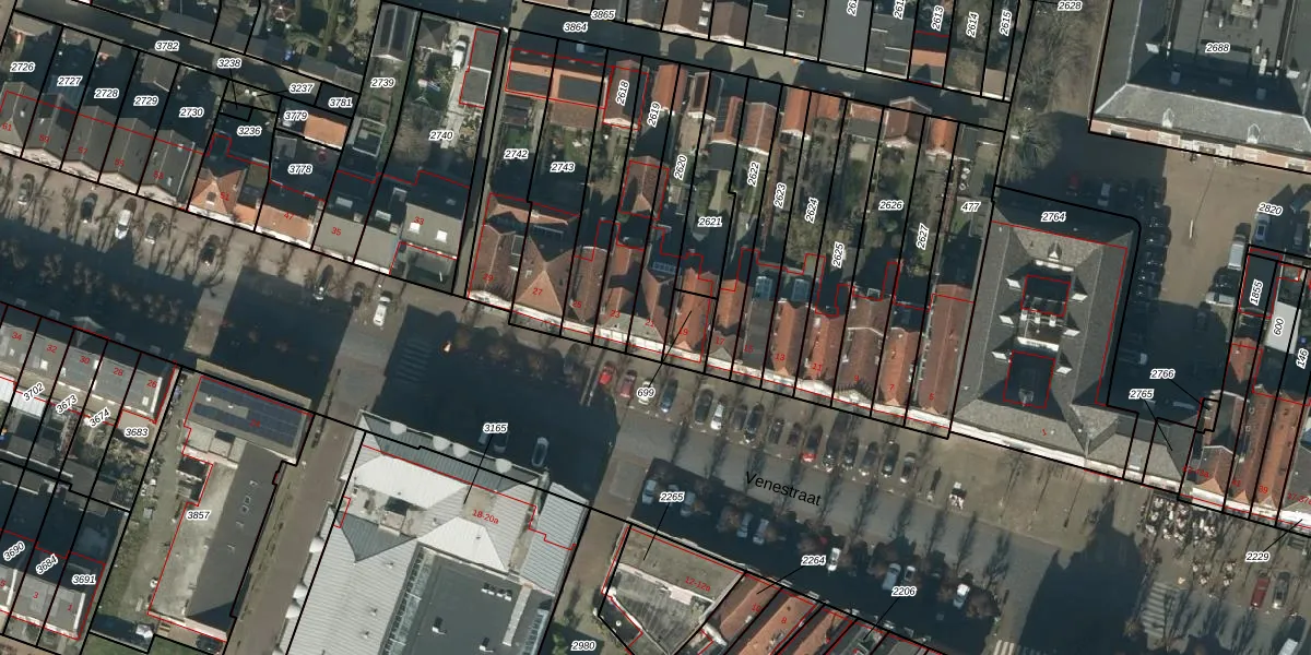 Venestraat 21 is gelegen op kadastraal perceel GTD01B2620. Deze kadastrale aanduiding is uniek en wordt gebruikt door het Kadaster om eigendomsrechten en andere zakelijke rechten vast te leggen. Het perceel maakt onderdeel uit van de kadastrale gemeente Geertruidenberg.