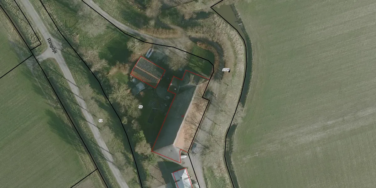 Het perceel waarop Ringdijk 12 staat heeft een oppervlakte van 5370 m². Dit is een zeer groot perceel. De perceeloppervlakte wordt geregistreerd door het Kadaster. Gedetailleerde informatie over de maten van dit perceel kunt u vinden in het rapport Kadastrale kaart met maatvoering van Ringdijk 12.